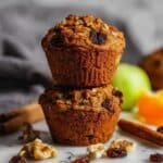 Wholesome Cinnamon Breakfast Muffins are a healthier take on the classic Morning Glory muffins with a perfectly soft, moist crumb and just enough sweetness with 12 grams of sugar per muffin. Featuring wholesome ingredients like shredded carrot, apple, walnuts, and warm cinnamon spice, these muffins are ideal for breakfast or a nutritious snack. They stay fresh for up to 5 days and freeze beautifully, making them convenient and delicious for busy mornings.